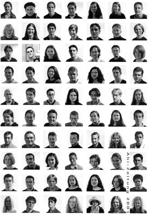 Hier bekommt Ihr einen kleinen Einblick in unsere legendäre Abi-Zeitung (von der übrigens noch Exemplare erhältlich sind (4,99 DM plus 3 DM Porto und 48,65 DM Verpackung)). Wie immer müsst Ihr Euch an mich wenden...